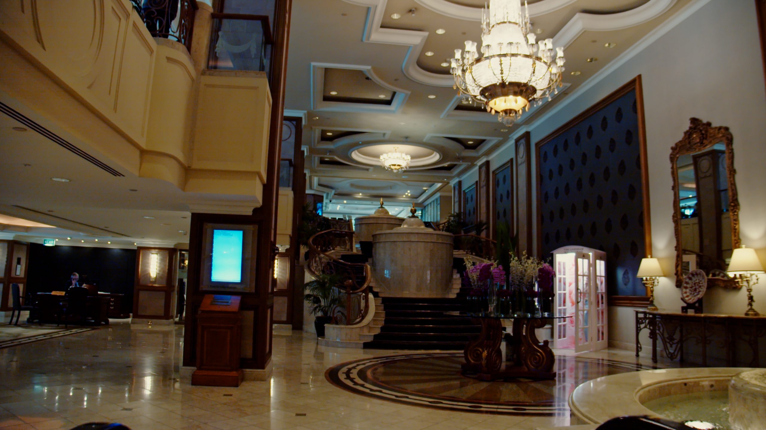 Entry is through the hotel’s expansive marble foyer where a magnificent Waterford crystal chandelier hangs aloft a gracious water feature skirted on both sides by an elegant stairway. All are testament to the style, quality and attention to detail demonstrated throughout the property.